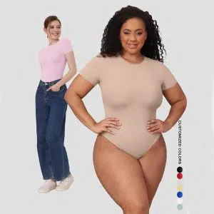 • High quality encrypted outerwear short sleeve thong body shaper is made of high elasticity medium thick fabric, three-dimensional cut tummy shaping.